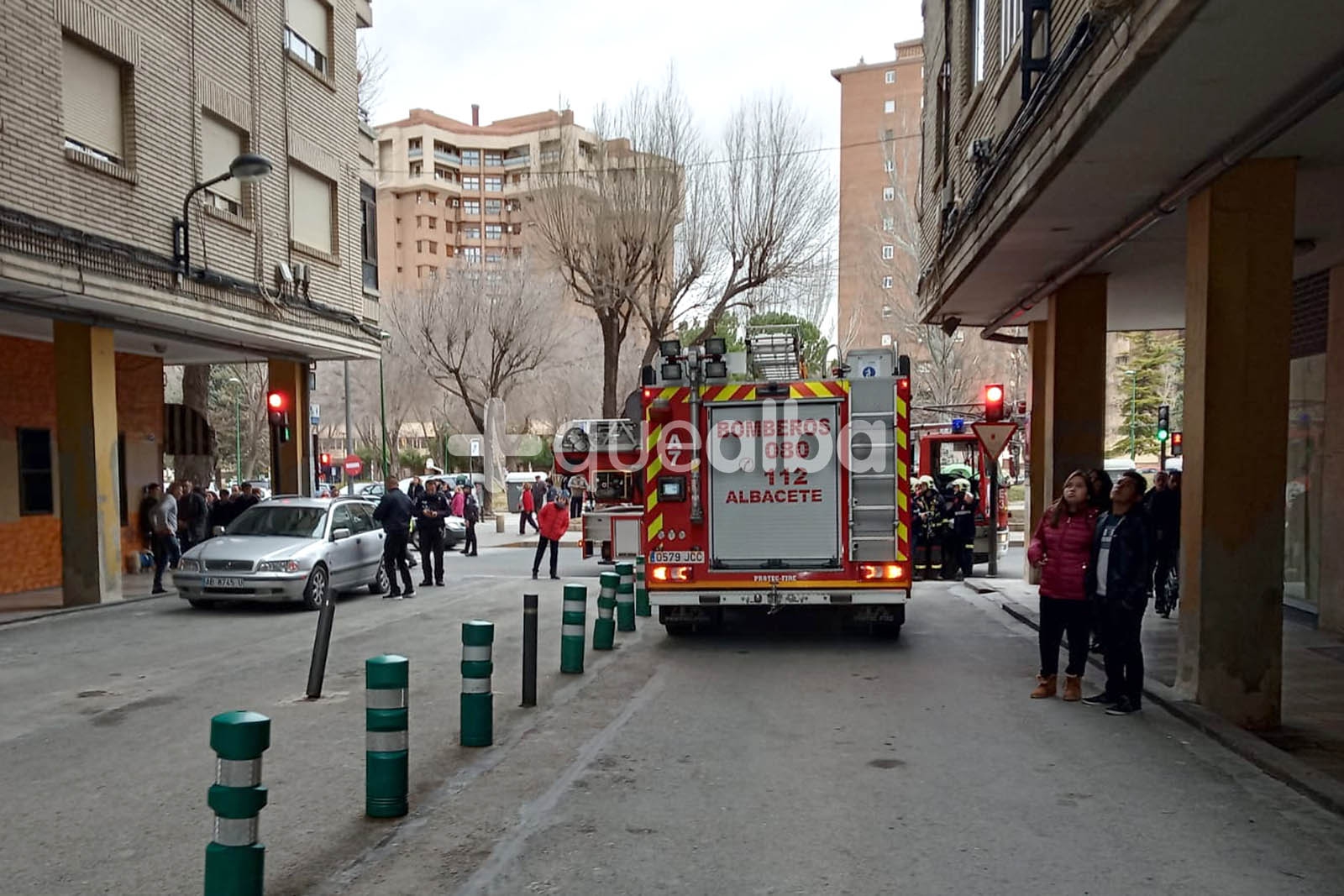 Bomberos, Policía y Servicios Médicos han acudido esta tarde a La Pajarita tras recibir un aviso por humo en uno de los portales de estos edificios de gran altura, en el centro de Albacete.