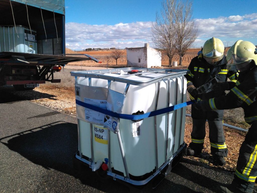 Bomberos del SEPEI de Villarrobledo actúan en un incidente en el kilómetro 132 de la A-43. «Derrame de un corrosivo (detergente ácido). Producto llamado betelene. Solucionado por Villarrobledo y jefe de guardia», indican.