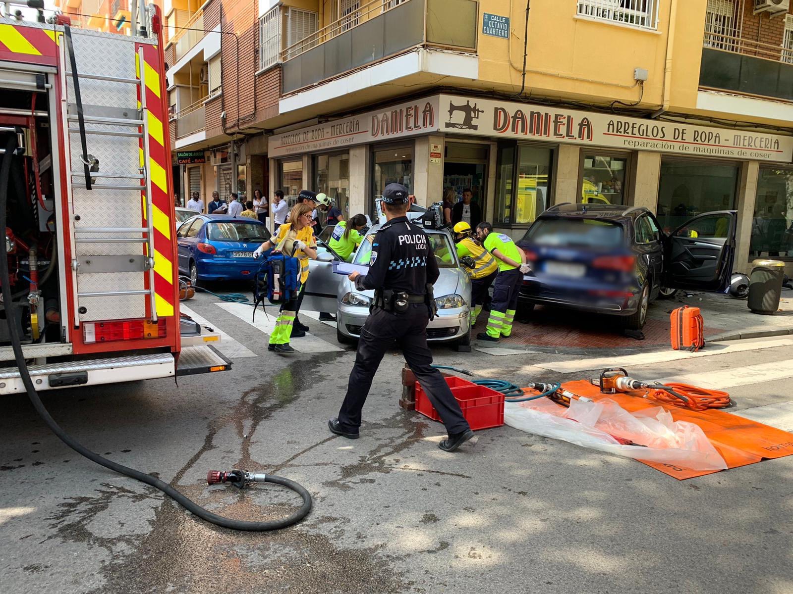 Una persona ha resultado herida en este espectacular accidente en la calle Octavio Cuartero. La Policía Local ha informado que hay un herido. Dos coches han chocado y han subido a la acera en lo que pudo ser una tragedia.