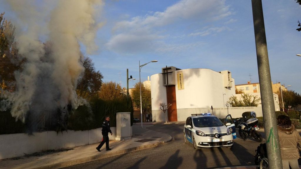 @guan_lof nos manda esta fotografía del incendio que se ha declarado cerca del Belmonte junto a la parroquia Santo Domingo de Guzmán. Destaca la rapidez de la Policía Local y su rápida actuación para controlar la situación.