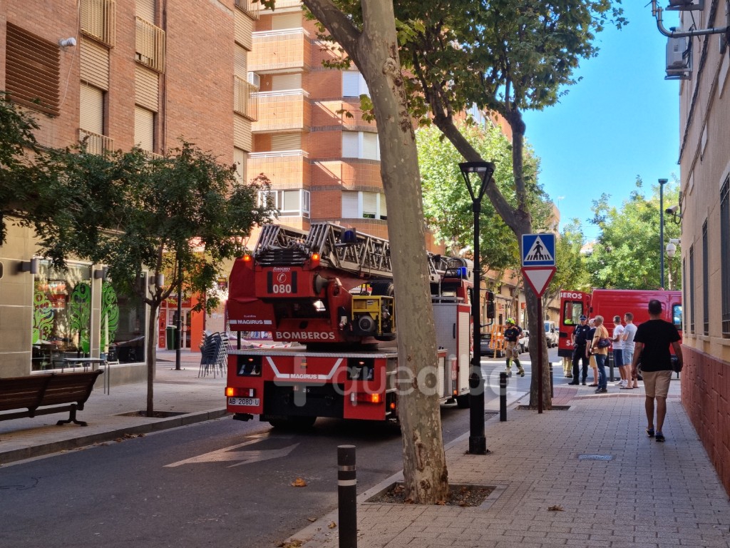 El desprendimiento de parte de una fachada en un edificio junto a la Comandancia de la Guardia Civil de Albacete ha obligado, alrededor de las cinco de esta tarde, a intervenir a los Bomberos.
