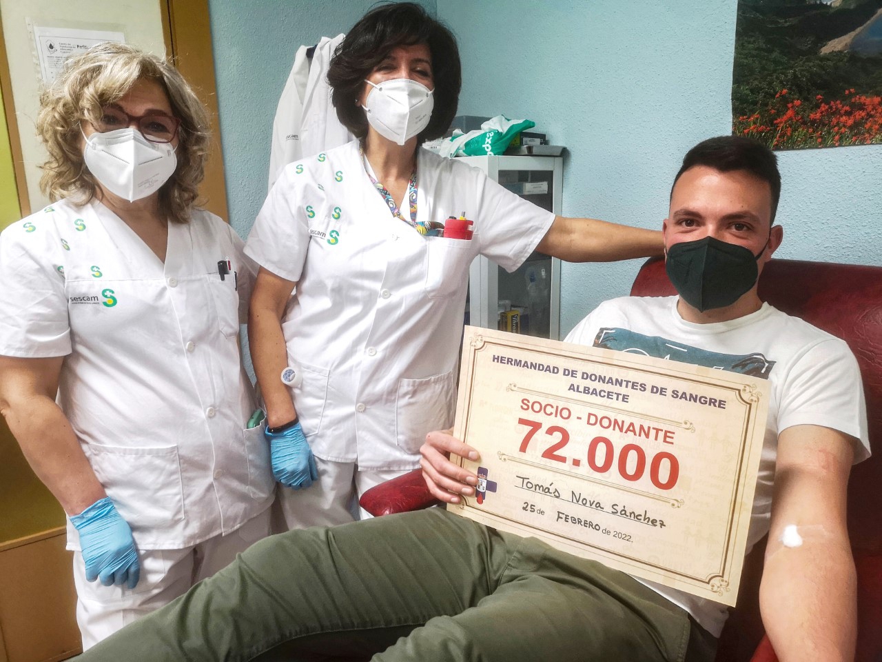 Esta mañana, el joven Tomás Nova Sánchez se ha convertido en el socio-donante número 72.000 inscrito en los registros de la Hermandad de Donantes de Sangre de Albacete al efectuar su primera donación en el Centro de Transfusión.