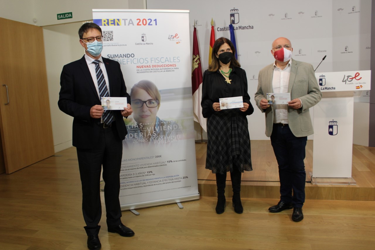 La directora general de Tributos y Ordenación del Juego, Susana Pastor, así lo ha afirmado durante su comparecencia, en la Casa Perona, para informar, junto al delegado de la Junta, Pedro Antonio Ruiz Santos; y el delegado provincial de Hacienda y Administraciones Públicas, Enrique Sánchez; de la campaña institucional sobre las nuevas deducciones en la cuota íntegra autonómica para residentes en Castilla-La Mancha.