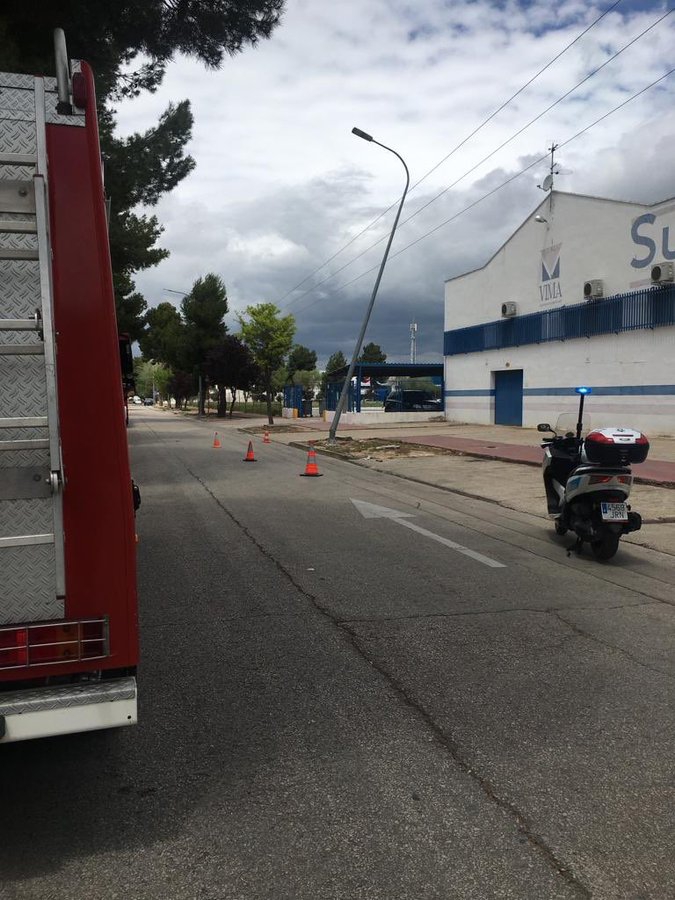 Un vehículo se ha estrellado contra una farola en Campollano, creando un peligro por la cercanía del tendido eléctrico a 20.000V. Policía Local y Bomberos han trabajado en la zona para que todo volviera a la normalidad. Del susto, ha informado la Policía Local en sus redes sociales.