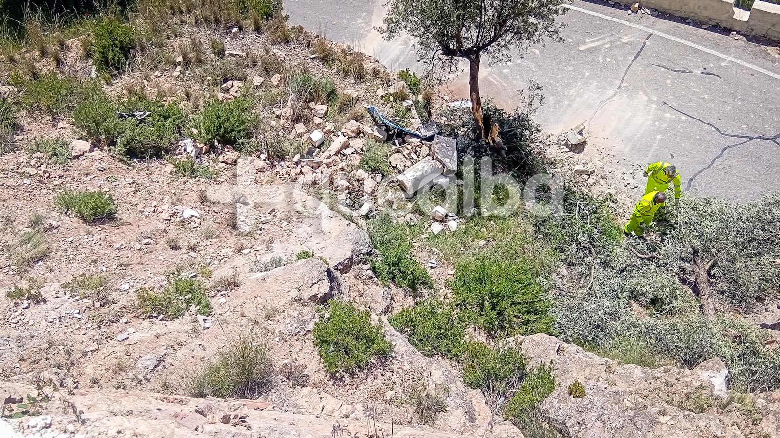 Como ha podido saber Masquealba los servicios de carretera trabajan ya en la zona para limpiar las piedras que han caído a abajo, en la carretera.