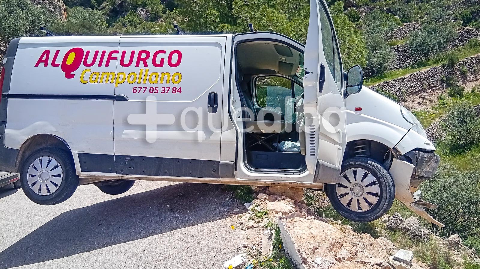 La cm-3203, en su llegada a Ayna, registraba este mediodía un aparatoso accidente, de una fugoneta de reparto, por suerte sin heridos.