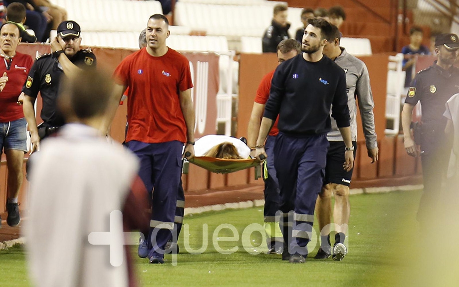 El desmayo de una chica de seguridad en la banda -minutos antes del descanso- alertó a los jugadores que llamaron a los servicios médicos y el juego estuvo detenido en el Belmonte unos minutos.