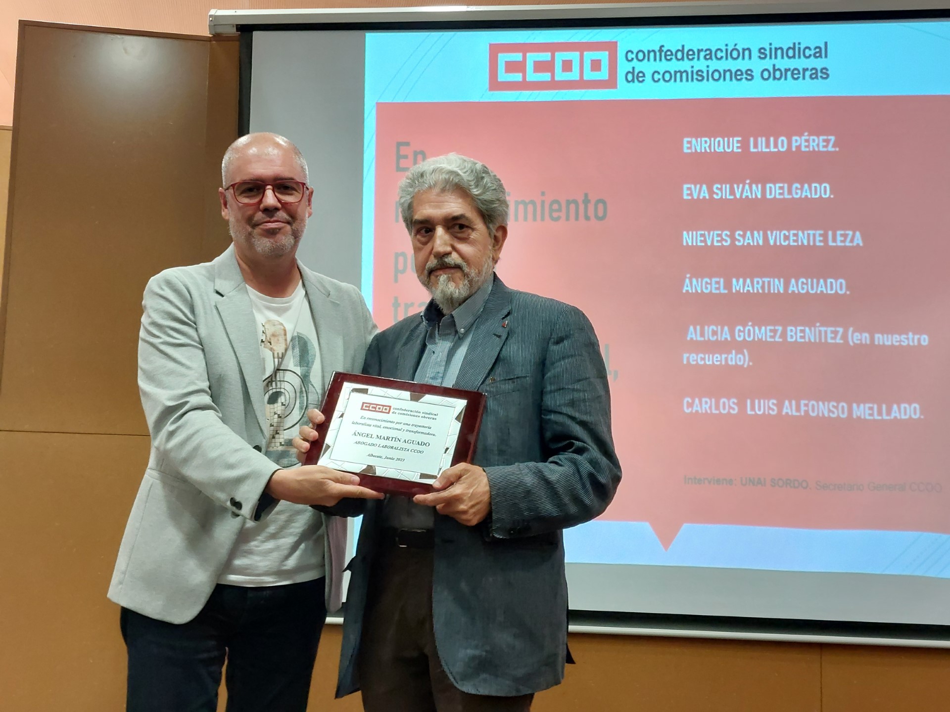 Unai Sordo ha añadido que si CCOO es una organización sólida y reforzada en “un momento complicado” es “porque cuenta con mimbres sólidos, personas que se han comprometido con la acción jurídica y sindicalgente con perfiles magníficos, que se implicaron con la democracia y el sindicato, con la defensa de trabajadores y trabajadoras; no es solo una profesión, es una experiencia de vida”.