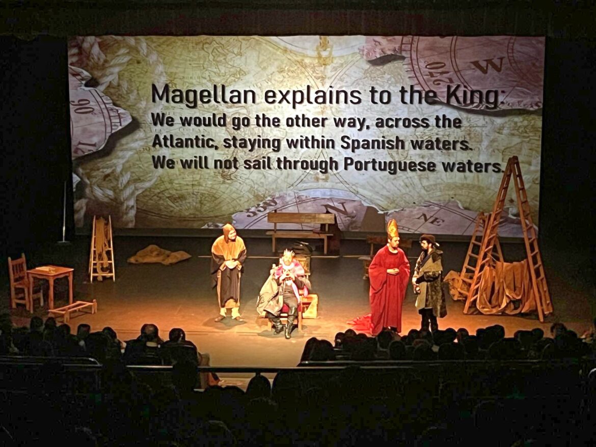 Esta producción de teatro de acción en inglés subtitulado, con un montaje de gran formato y nivel artístico con 9 actores ingleses sobre el escenario,relata la historia de estos dos grandes marinos que demostraron al mundo con hechos lo que muchos defendían, que la tierra era redonda. Hace 500 años, esta expedición completó por primera vez la circunnavegación del planeta y esta representación acerca al alumnado a esa aventura.