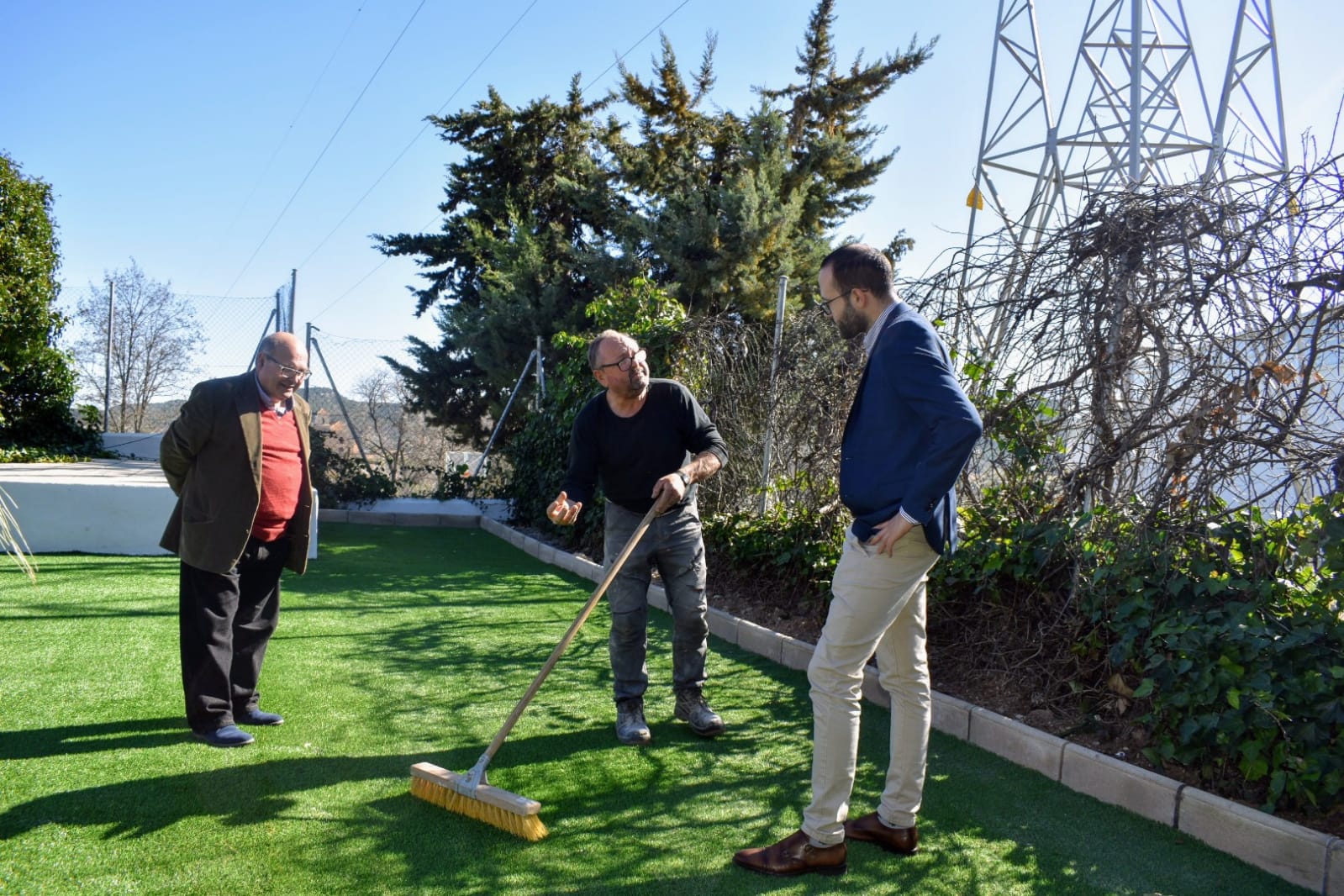 Junto al primer edil de este municipio de la Sierra del Segura, Saturnino González, y la responsable municipal de Obras y Servicios, María Ángeles Mata; Valera ha podido comprobar el avance de las actuaciones de instalación de césped en la piscina municipal. Acciones que se están realizando con cargo a la partida de subvenciones y ayudas para el Mantenimiento de Instalaciones Deportivas que la Casa Provincial pone a disposición de los Ayuntamientos de la provincia. Esta partida económica cuenta con una dotación de 150.000 euros y tiene como objetivo contribuir a la mejora de espacios deportivos de diferente índole, y en el caso de Socovos la inversión de la Diputación ha sido de 2500 euros, cantidad que sumada a la aportación municipal (2500€) permitirá, además de la instalación del césped, mejoras en las duchas, adecuación del perímetro de la piscina y un ahorro considerable de agua puesto que este recurso carece de necesidades de riego.