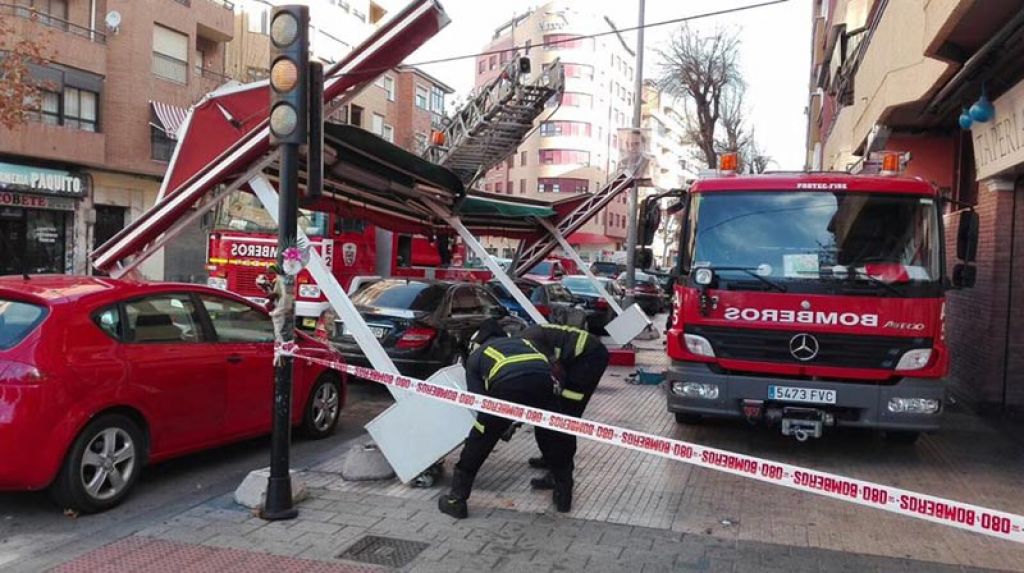 El toldo ha caído sobre varios vehículos aunque, por suerte, los daños han sido solamente materiales.