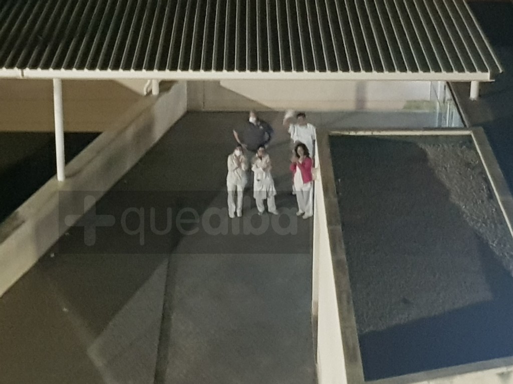 En el centro de salud Zona VII, en la Calle Virgen del Pilar, y ante la multitud de aplausos que, a las 22 horas, se escuchaban desde los balcones de los vecinos, el personal sanitario ha salido a agradecer las muestras de cariño.
