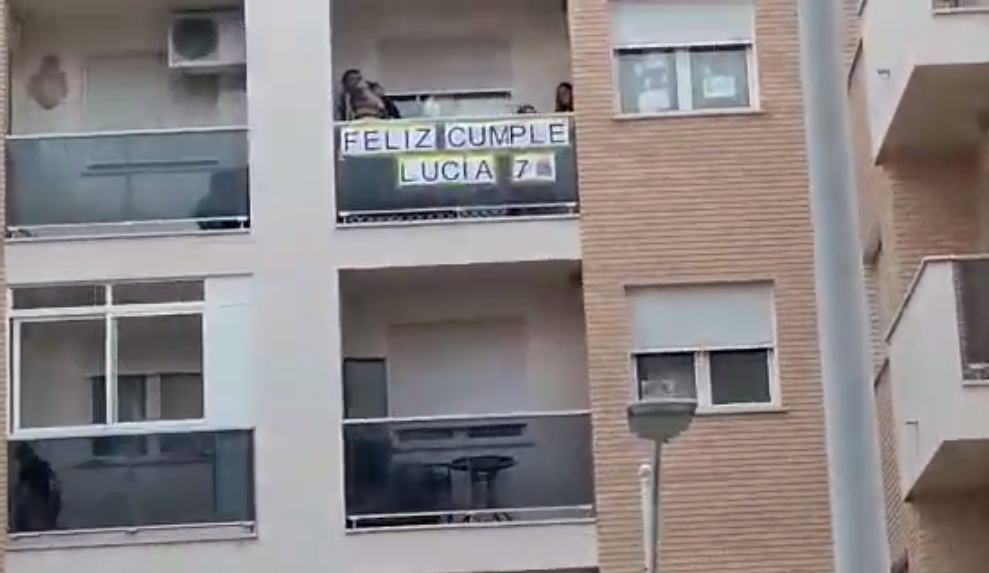 Desde el barrio de Imaginalia, en la calle María de Zayas, nos llega cómo ha celebrado Lucía sus 7 años. No sería el cumpleaños que habría planeado hace un mes, pero su familia, desde el balcón lo ha hecho muy especial.