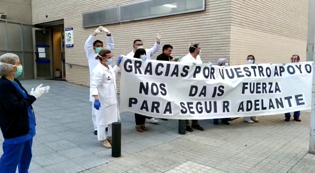 En el centro de Salud Zona VI de la ciudad de Albacete, por la Estación, el personal sanitario salía hoy con esta gran pancarta a dar las gracias por el apoyo q reciben.