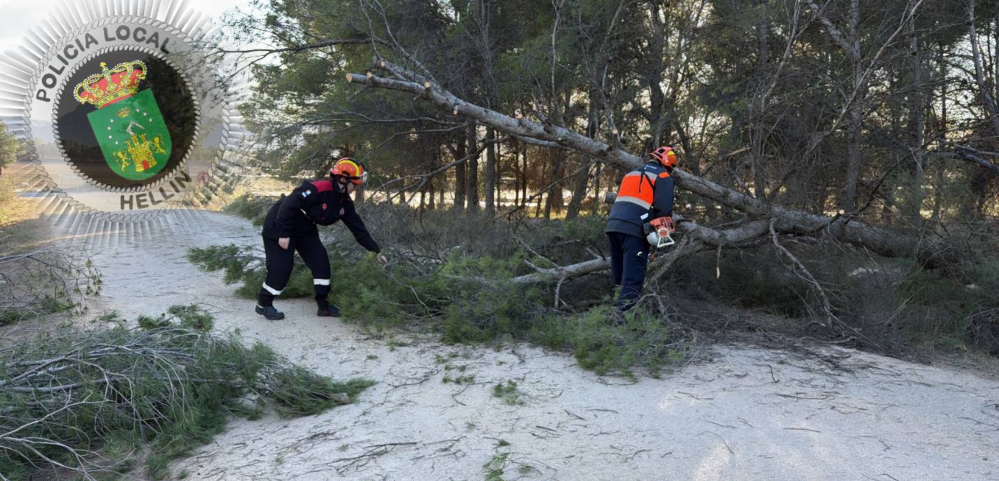 Han explicado que bomberos del parque del Sepei de Hellín «están interviniendo con nosotros en la retirada de árboles y ramas, asegurando cornisas y cubiertas y actuando ante desprendimientos que suponen peligro inmediato», mientras que Protección Civil colabora también en las zonas afectadas por el temporal.