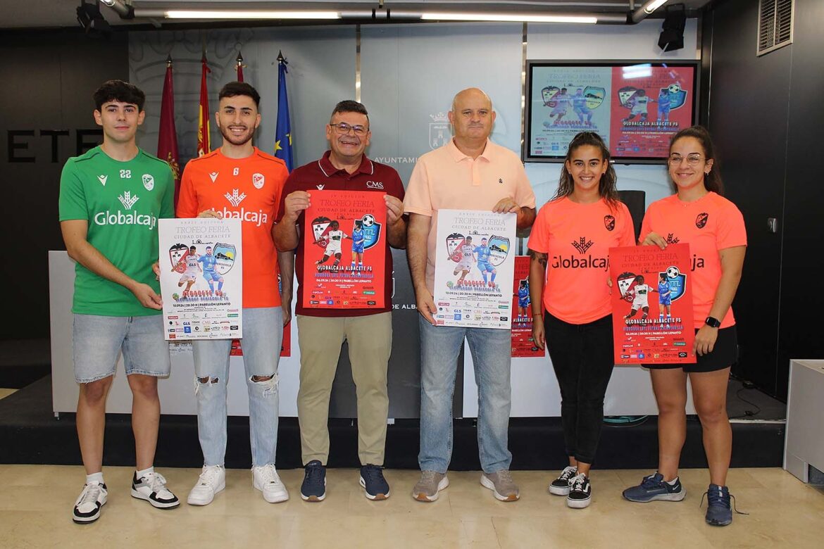 Acompañado por el presidente del Albacete Fútbol Sala, Jesús Corredor, y los jugadores Álvaro Ruano y Miriam Martínez, el concejal ha explicado que esta tarde, a las 20:30 horas, tendrá lugar la IV edición del Trofeo de Feria ‘Ciudad de Albacete’ femenino entre el Globalcaja Albacete FS y el Hidrogea LBTL Futsal Alcantarilla, en el pabellón Lepanto.