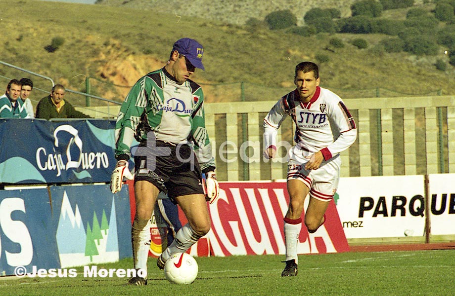 En la temporada 98-99 se repitió el resultado, es decir, 1-1, y con el mismo protagonista en el Albacete, Leandro. El Numancia se presentaba como líder y acumulaba seis victorias consecutivas en las seis jornadas disputadas. El equipo de Luigi Maifredi mantenía las constantes vitales pero rondaba la zona baja. Aguantaron los manchegos las embestidas de los sorianos, que se adelantaron con gol de Castaño y pudieron sentenciar en la primera parte, pero no lo hicieron y el Albacete es fue creciendo hasta que en el minuto 88 un cabezazo de Magano lo sacó el delantero Iñaki Hurtado con el brazo en la misma línea de gol, con el consiguiente penalti que transformó el pequeño Leandro. En aquel Numancia jugaban históricos como Barbarín, Palacios, Octavio o un joven Javi Moreno, que marcó 18 goles esa Liga para contribuir al ascenso de los sorianos a Primera.