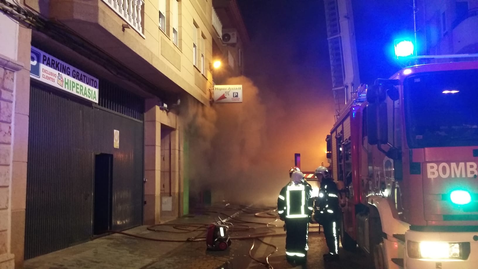 El fuego, del que fueron alertados los bomberos a través de una llamada de la Policía Local, comenzó de madrugada y afecta a un bajo comercial ubicado en la Calle Dos de Mayo. La virulencia de las llamas provocada por el gran número de productos aglutinados en este espacio comercial ha obligado a evacuar el edificio en el que se encuentra el citado bazar y las casas colindantes para evitar daños personales.