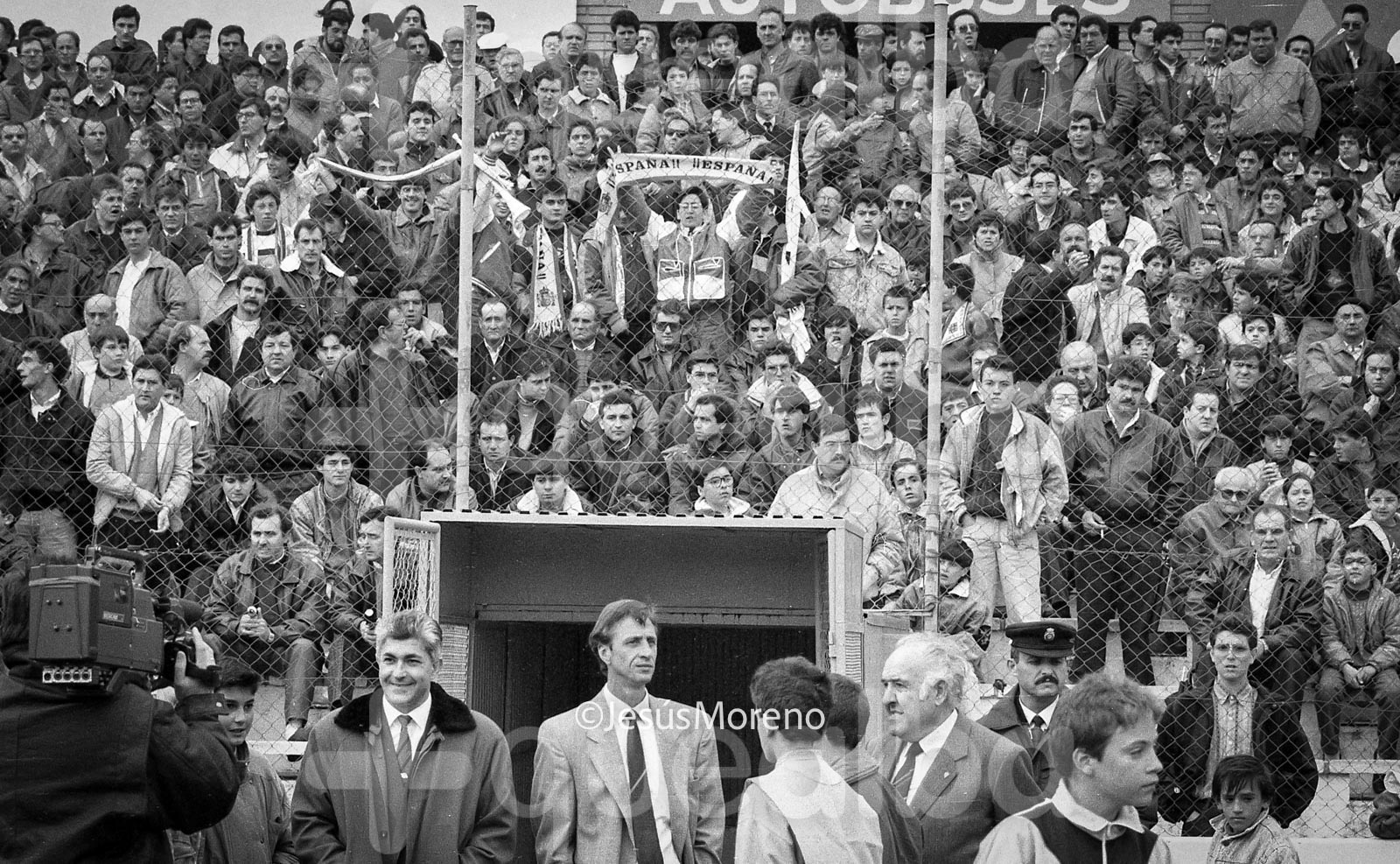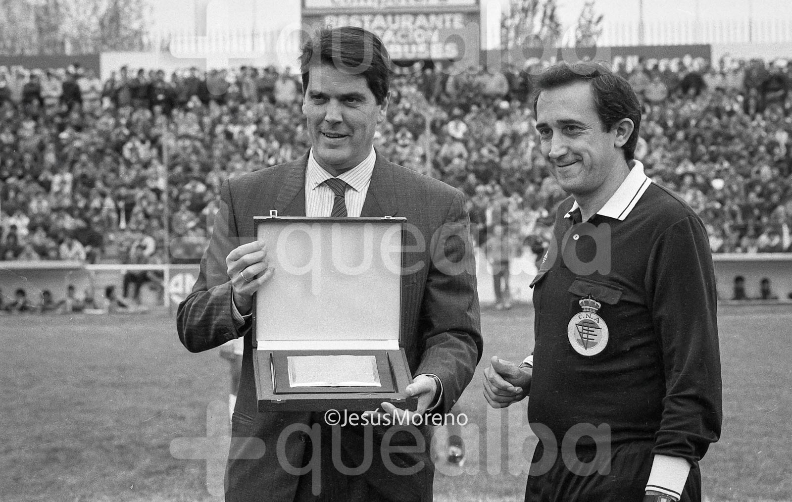 Recordamos, a través de las imágenes históricas del grande de Jesús Moreno, la primera visita del Barça al Carlos Belmonte. Fue para disputar un amistoso, el 1 de mayo de 1990, con Rafael Candel como presidente del club blanco.