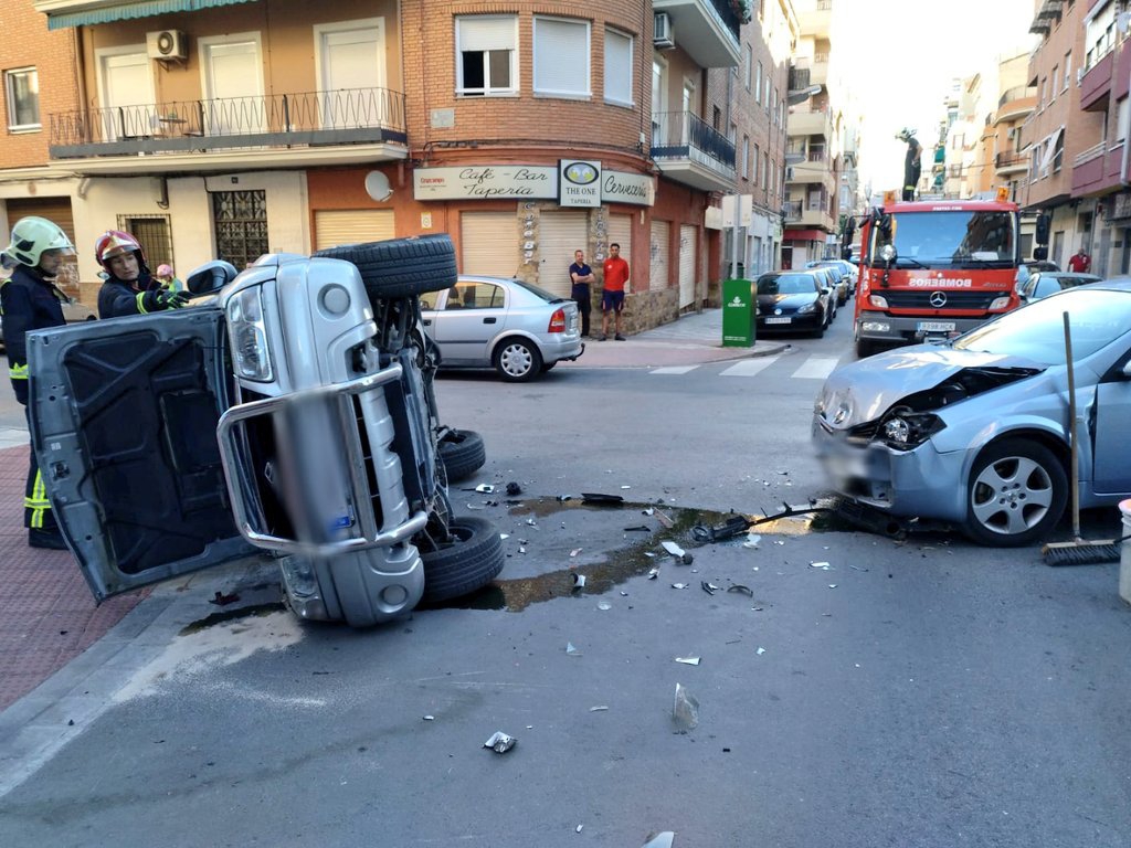 Bomberos y Policía Local han tenido que actuar esta mañana en un aparatoso accidente en el cruce de las calles Antonio Machado con Torres Quevedo.