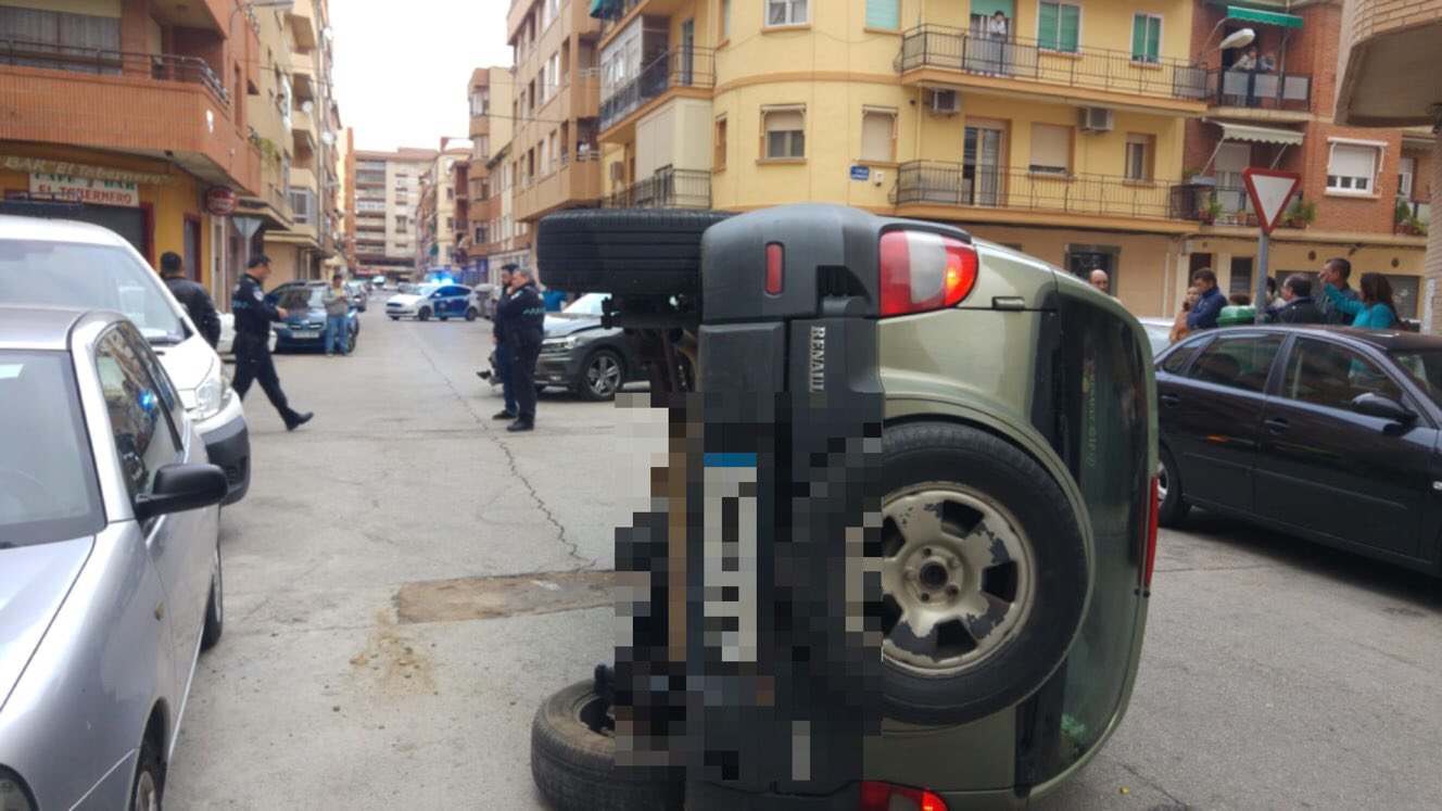 Aparatoso accidente está tarde en Albacete, en la calle Cristóbal Colón cerca de Lepanto con el choque de dos coches en uno de los cruces, que acababa con un turismo volcado en plena calle.