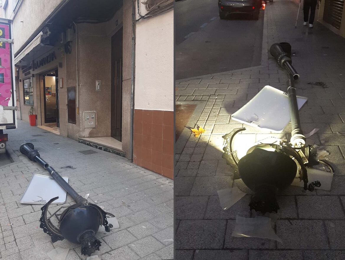 Cuando la noche se hizo en la ciudad, la luz también llegó a este punto de la capital, aunque esta vez la farola no pudo cumplir con su papel, tras el incidente sufrido.