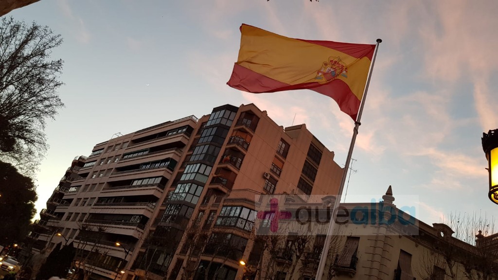 El viento que este miércoles 9 de enero sopla en Albacete hace que pueda ondear la gran bandera de España que se colocó en la Plaza Gabriel Lodares, frente a la Punta del Parque Abelardo Sánchez, por el 40 Aniversario de la Constitución Española.