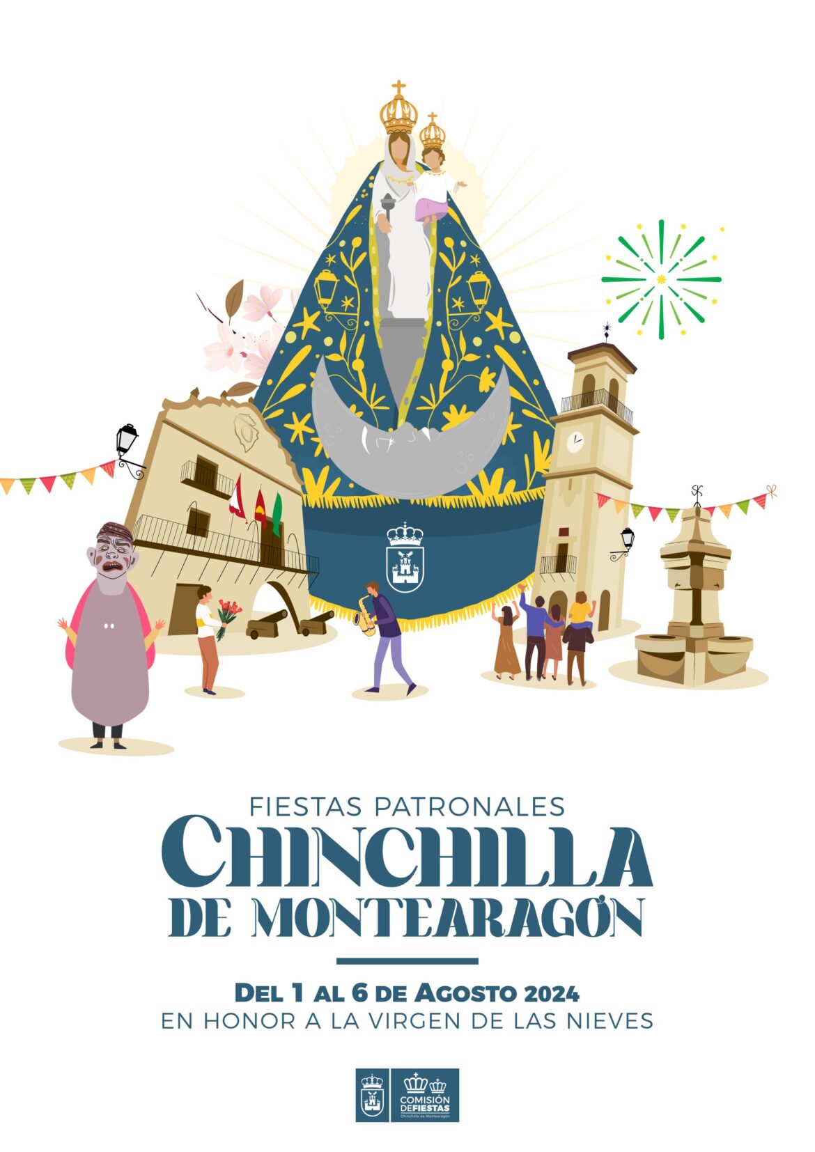 El cartel de este año, con la frase “Chinchilla a tus plantas se extiende tranquilo” extraída del himno de nuestra patrona, refleja «la esencia de nuestras fiestas, destacando la imagen de la Virgen de las Nieves que preside en lo alto, mientras las calles de Chinchilla se llenan de vida y alegría», como lo han destacado desde la Comisión de Fiestas de esta localidad.
