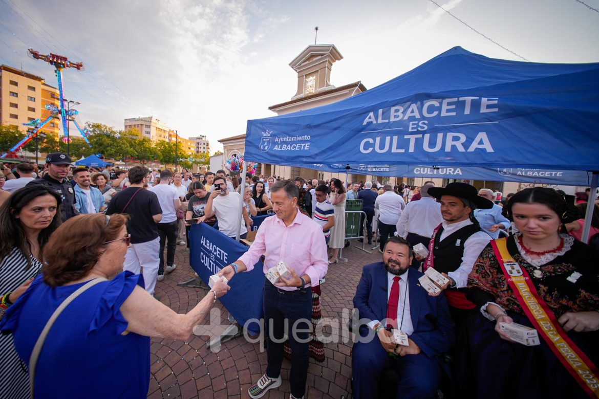 En el reparto han estado el alcalde de Albacete, Manuel Serrano; y el alcalde de La Roda, Juan Ramón Amores, junto a los Manchegos de Feria.