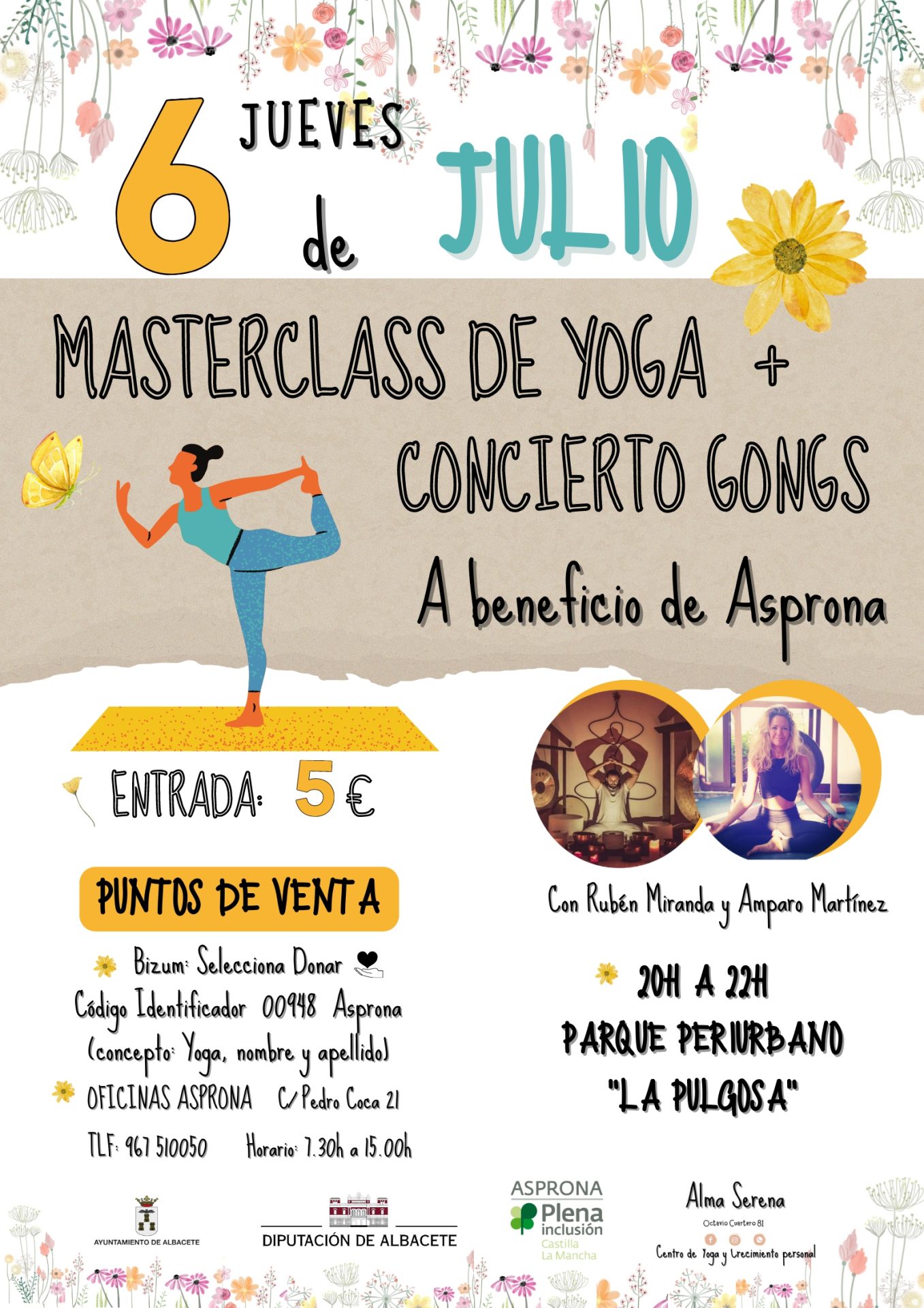 El Centro de Yoga y crecimiento personal Alma Serena (@alma_serena_ab) ha organizado una Masterclass de Yoga y un concierto Gongs a beneficio de ASPRONA.
